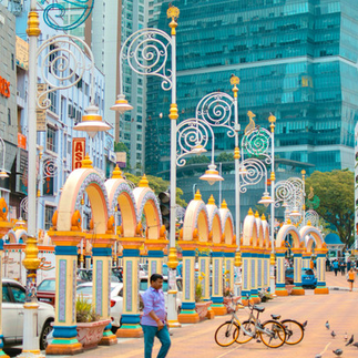 「リトル・インディア」では色とりどりの布やスパイスが並び、ヒンドゥー教の祭典「ディーワリ」の時期は、マリーゴールドの花飾りに街が光と花で彩られます。「ロティ・チャナイ」や「カレー」など、本場の味を手軽に楽しめます。
